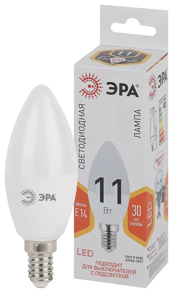 Лампа светодиодная Эра E14 11W 2700K LED B35-11W-827-E14 Б0032980