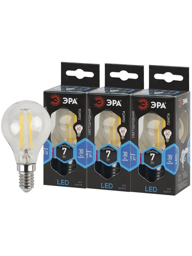 Лампа светодиодная Эра E27 7W 2700K F-LED P45-7W-827-E27 Б0035591