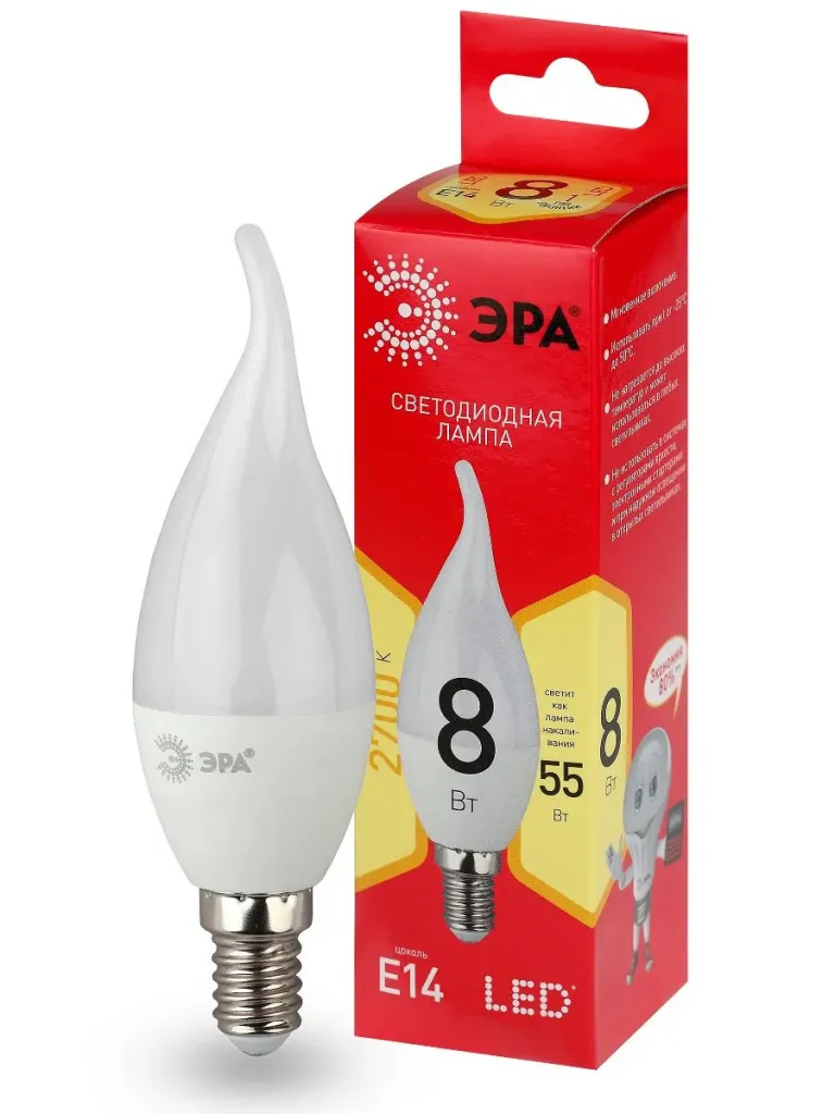Лампа светодиодная Эра E14 8W 2700K LED BXS-8W-827-E14 R Б0051853
