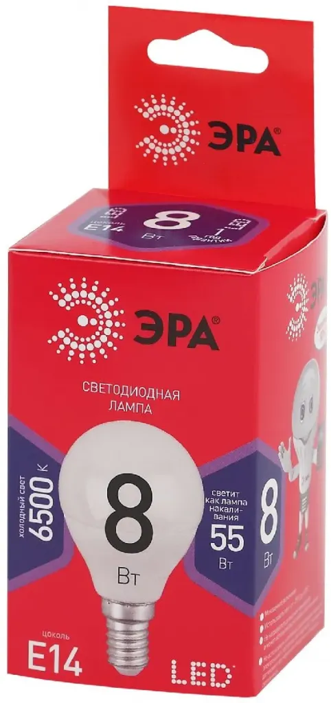 Лампа светодиодная Эра E27 8W 6500K LED P45-8W-865-E27 R Б0045359