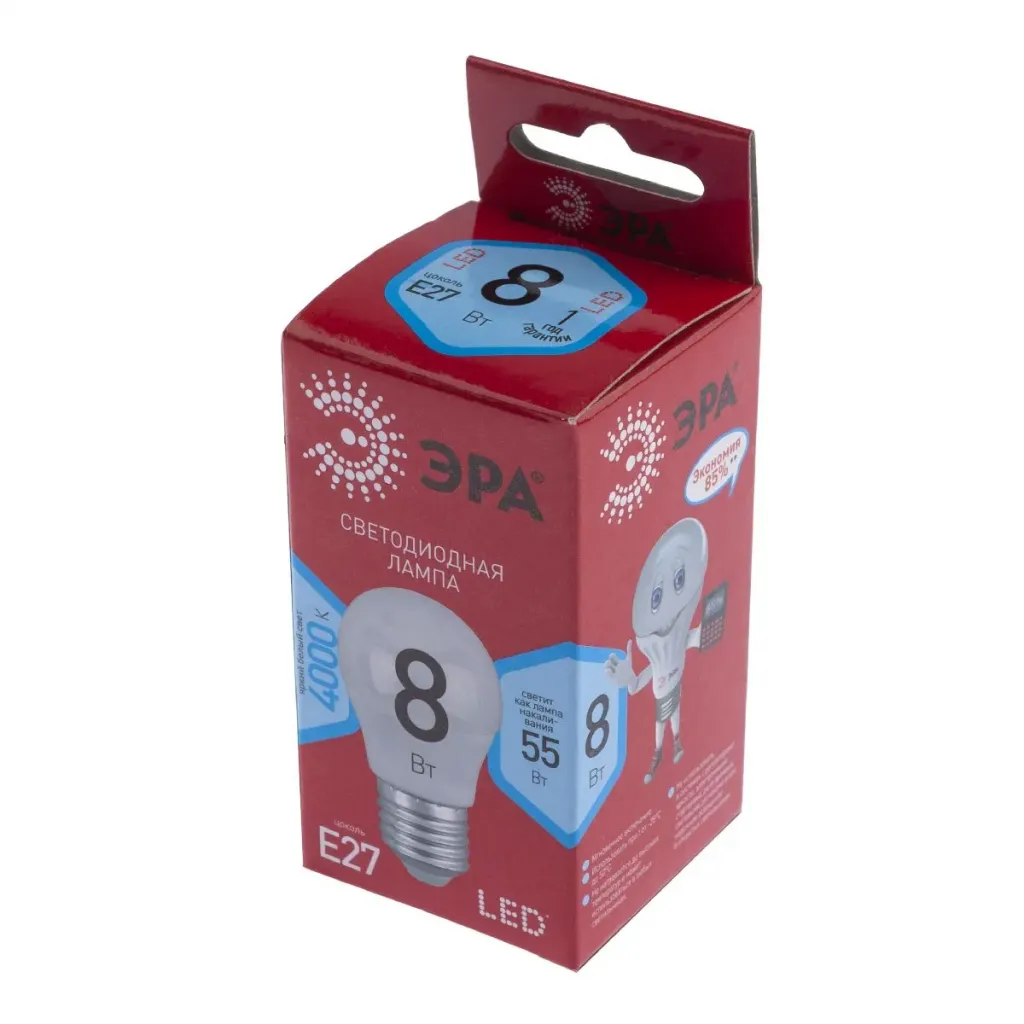 Лампа светодиодная Эра E27 8W 4000K ECO LED A55-8W-840-E27 Б0032096