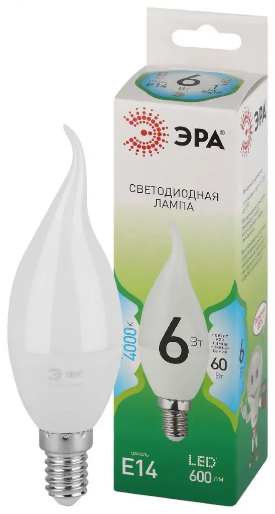 Лампа светодиодная Эра LED BXS-6W-840-E14 GL 4000K свеча на ветру Б0067131