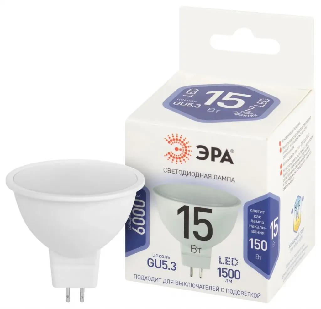 Лампа светодиодная Эра STD LED MR16-15W-860-GU5.3 6500K