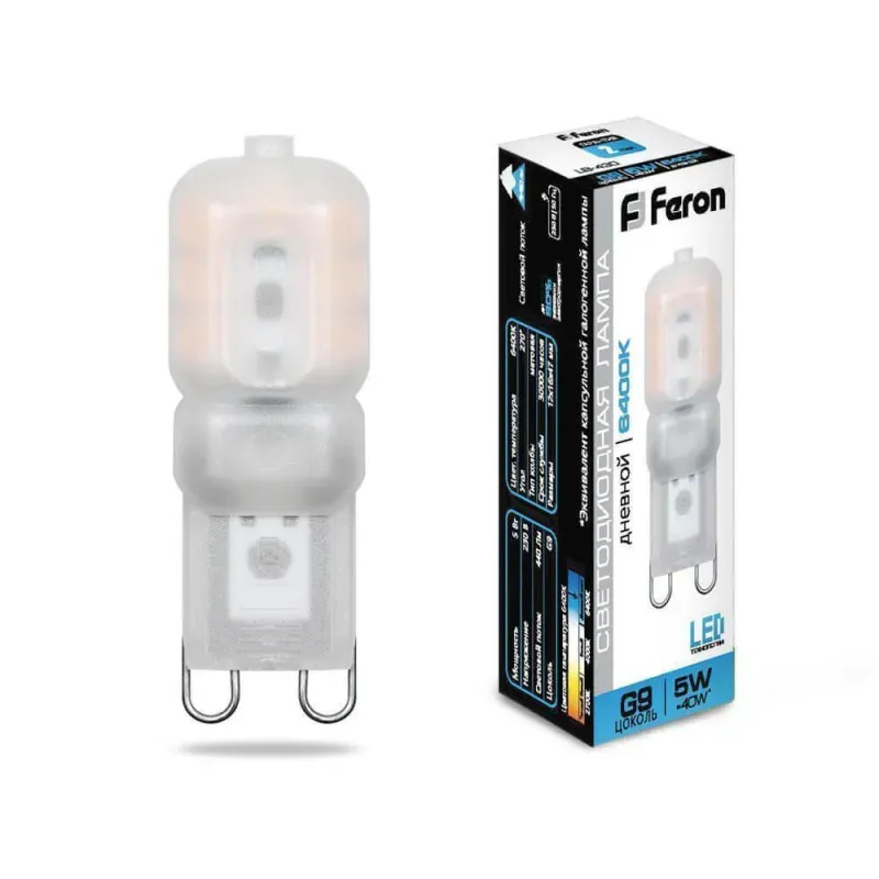 Лампа светодиодная Feron G9 5W 6400K Прямосторонняя Матовая LB-430 25638