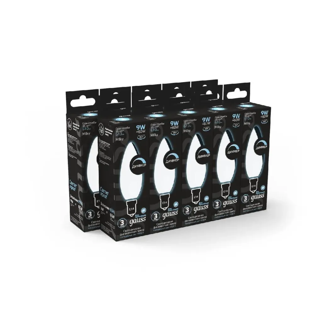 Лампа светодиодная филаментная диммируемая Gauss E14 9W 4100К матовая 105201209-D