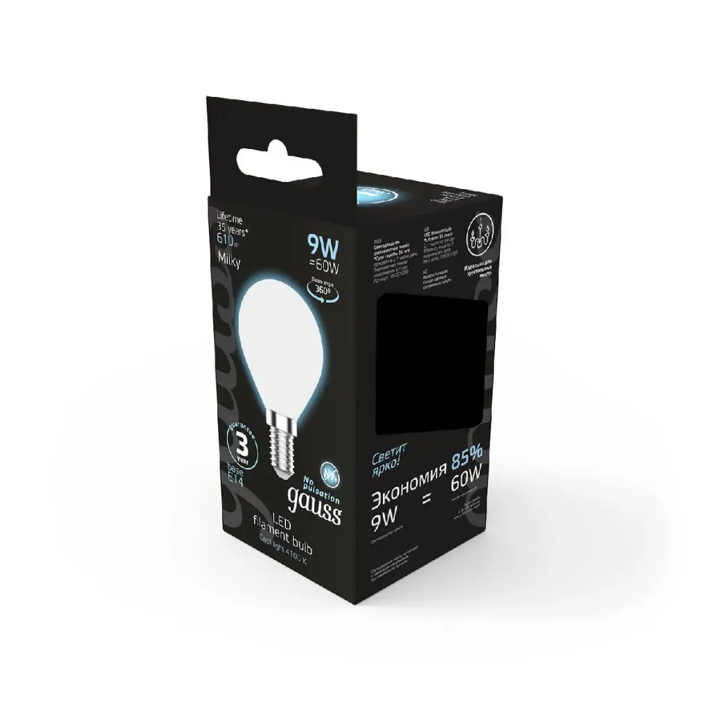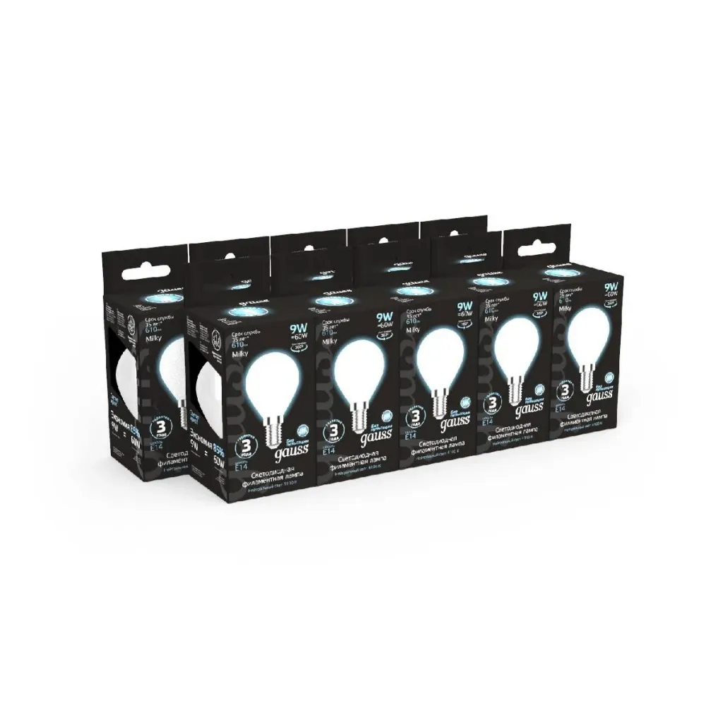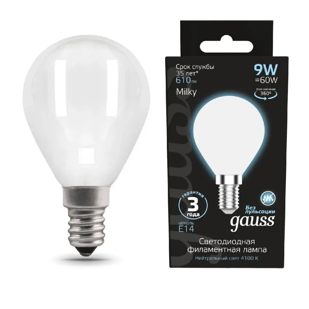 Лампа светодиодная филаментная Gauss E14 9W 4100К матовая 105201209