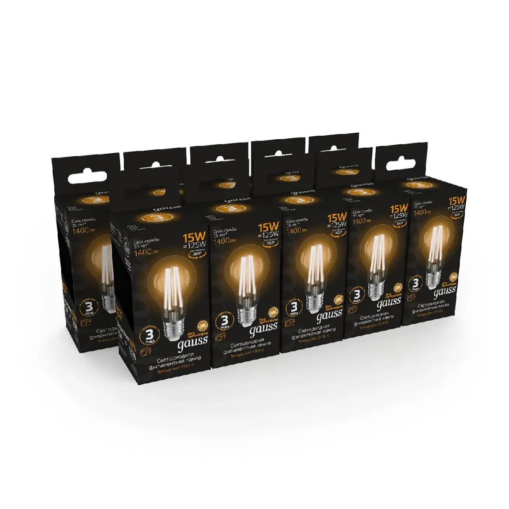 Лампа светодиодная филаментная Gauss E27 15W 2700K груша прозрачная 102902115
