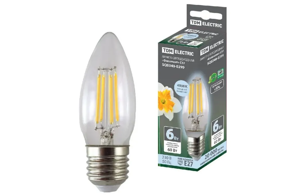 Лампа светодиодная филаментная TDM Electric Е14 6W 4000K прозрачная SQ0340-0276