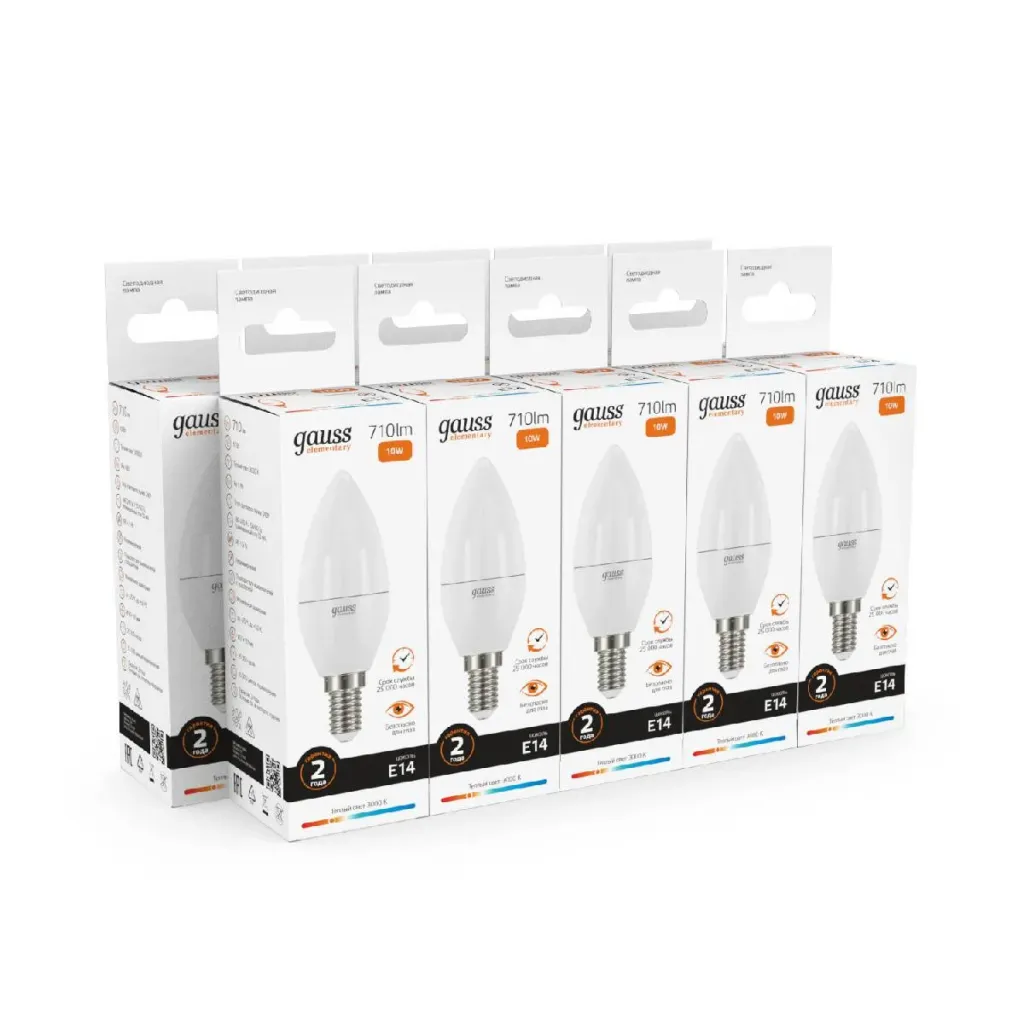 Лампа светодиодная Gauss E27 6W 3000K свеча матовая 33216