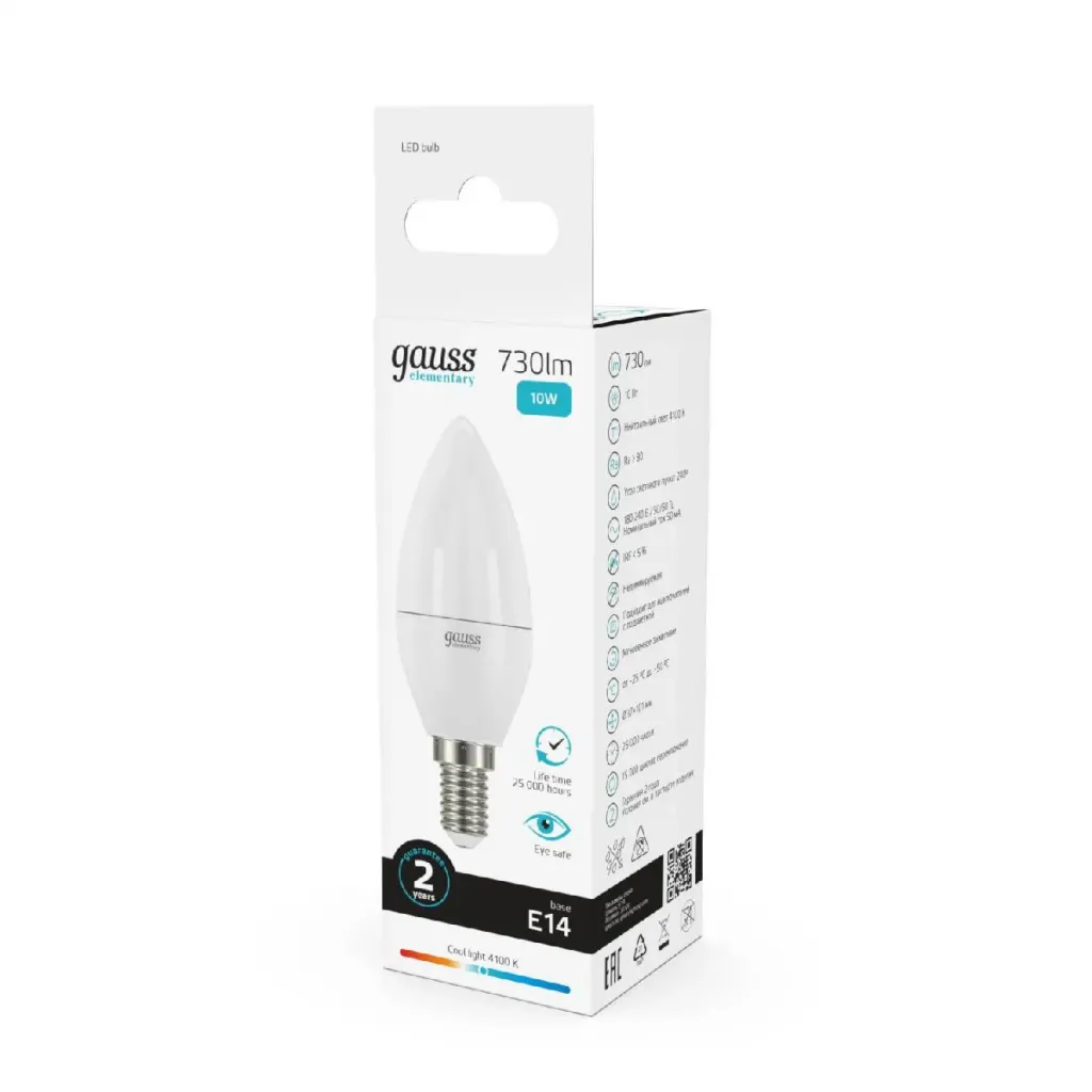 Лампа светодиодная Gauss E14 10W 6500K свеча матовая 33130