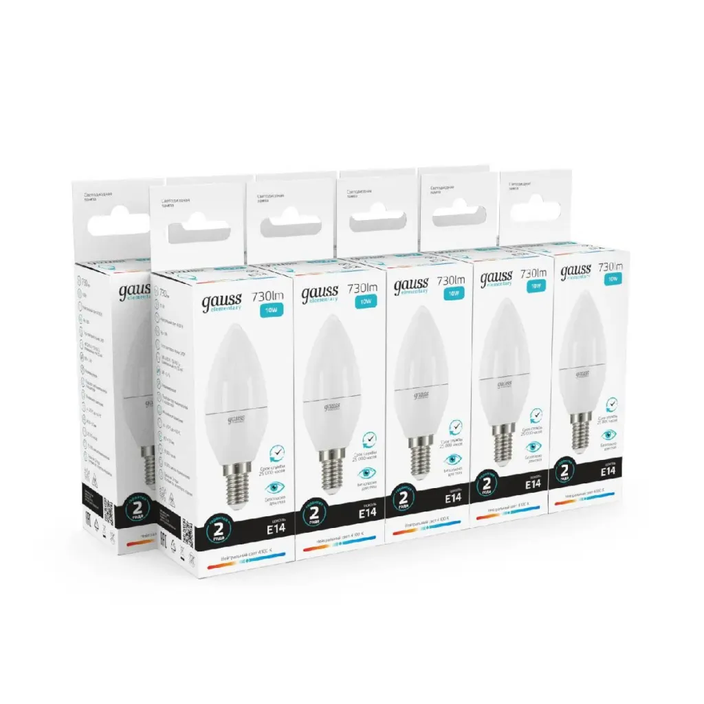 Лампа cветодиодная Gauss E27 6W 4100K свеча матовая 33226