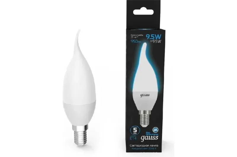 Лампа светодиодная Gauss E14 5,5W 3000К свеча на ветру матовая 1034116