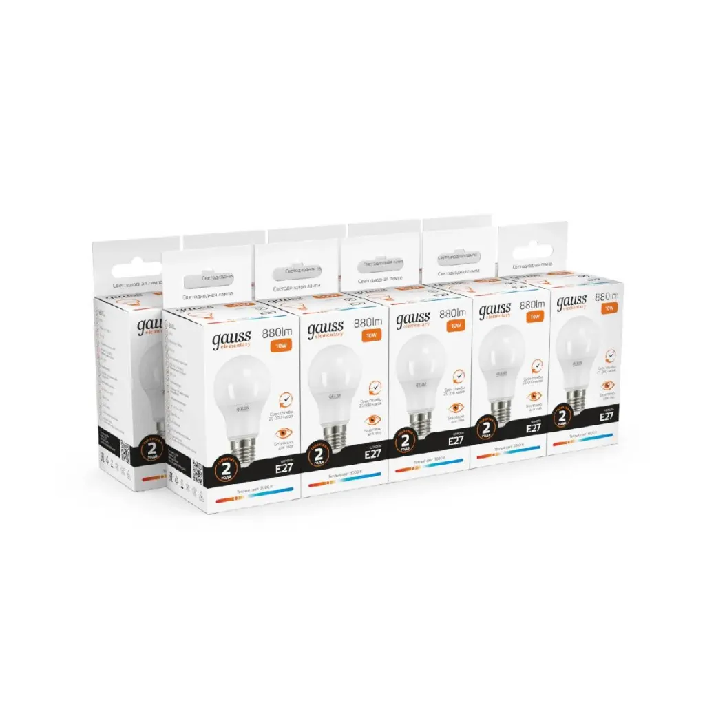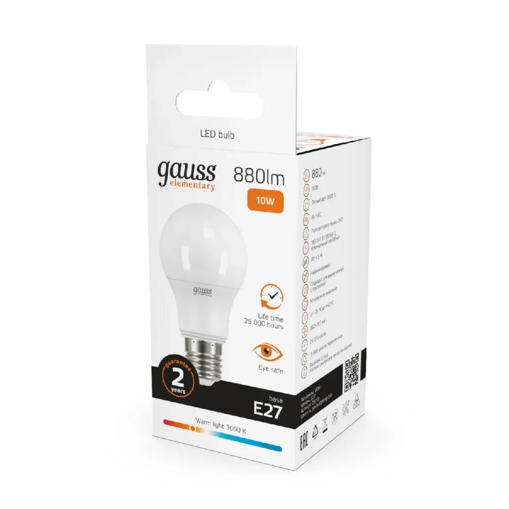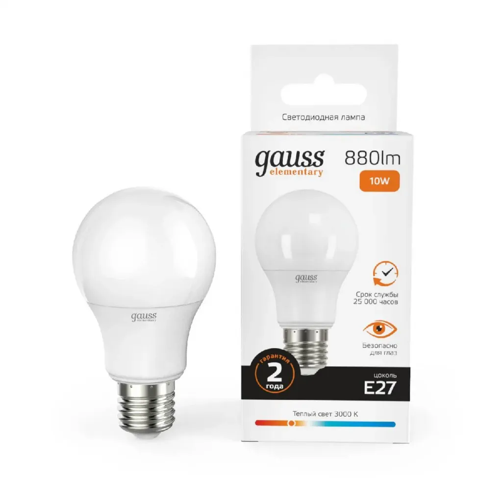 Лампа светодиодная Gauss E27 10W 3000K груша матовая 23210