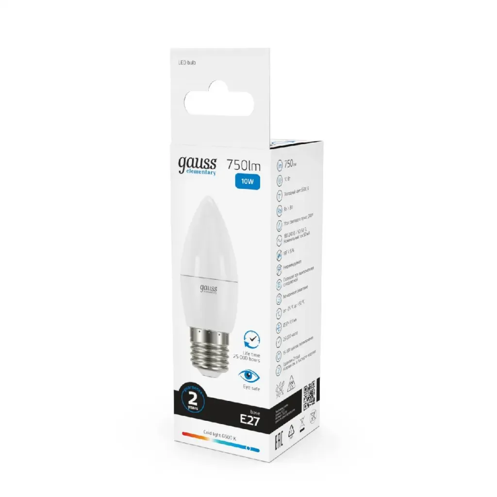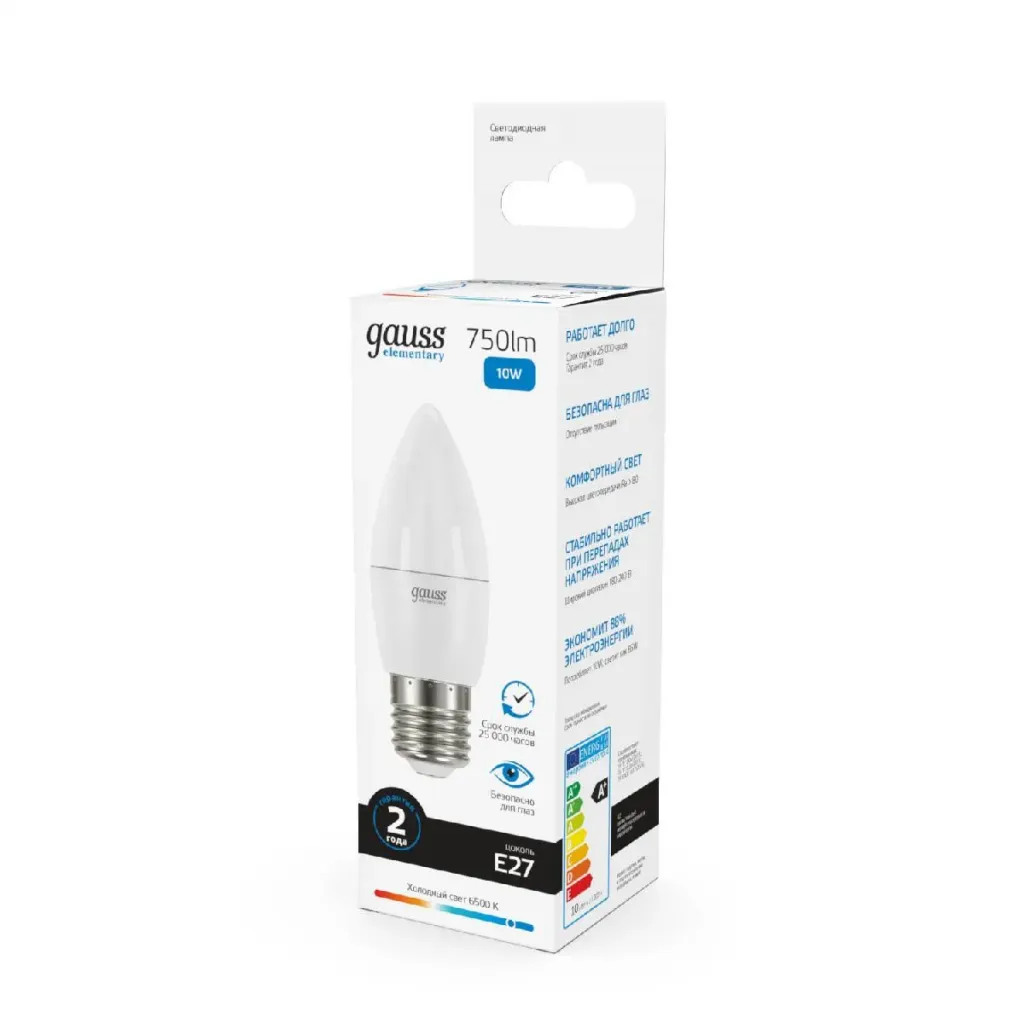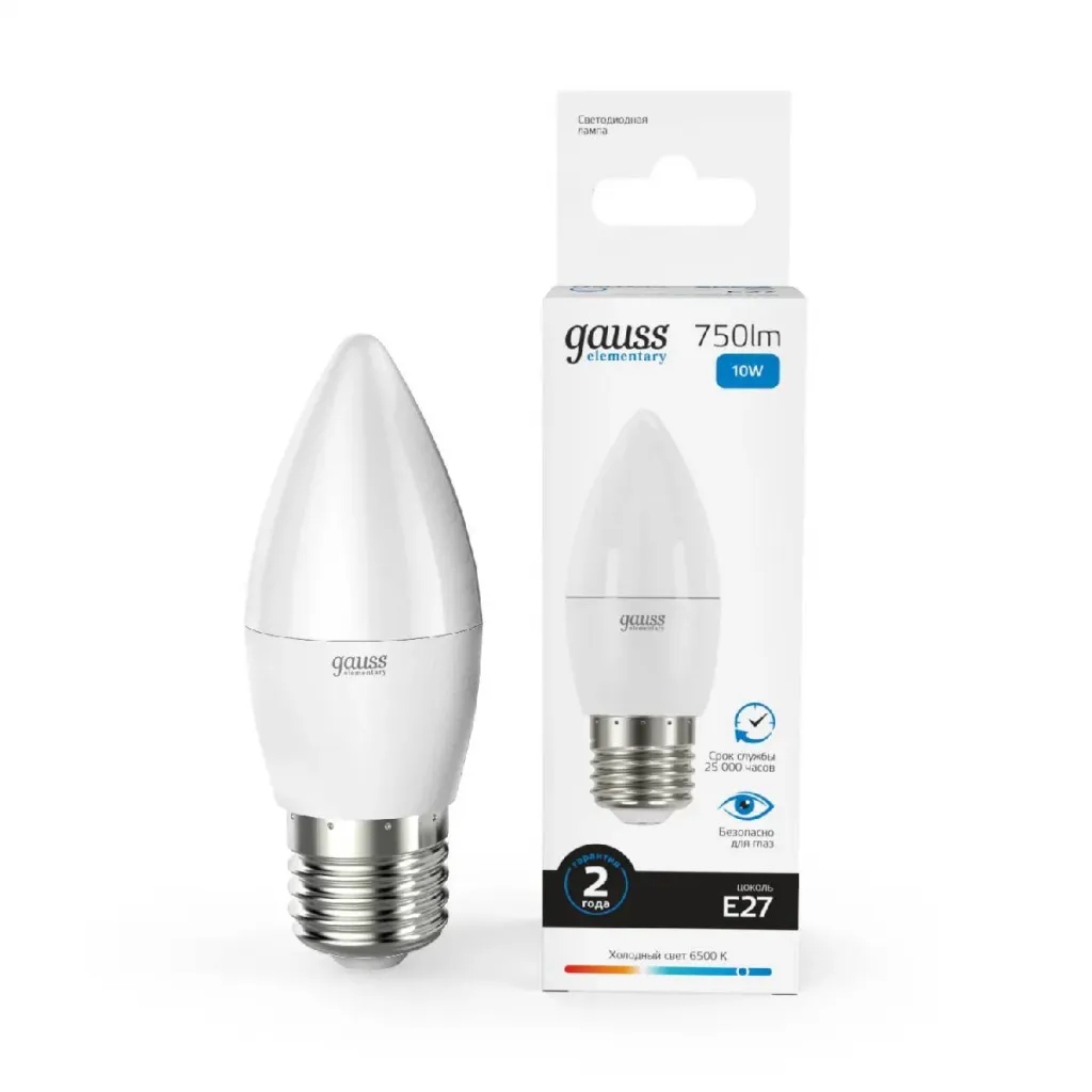 Лампа светодиодная Gauss E27 10W 6500K свеча матовая 30230