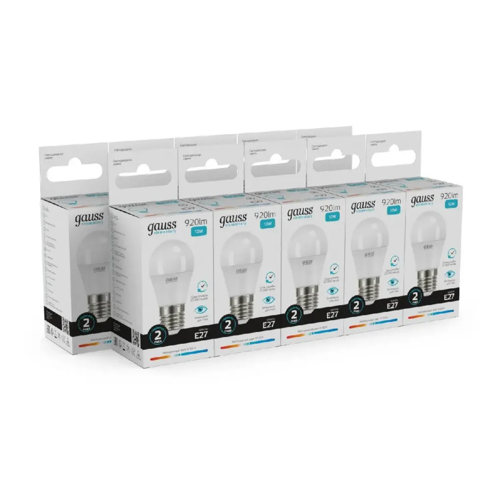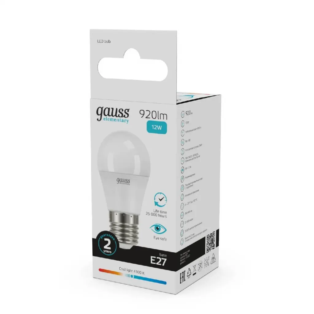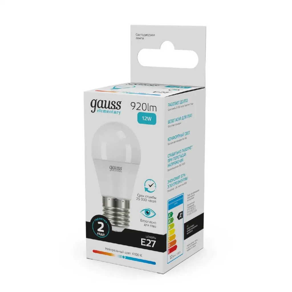 Лампа светодиодная Gauss E27 12W 4100K шар матовый 53222