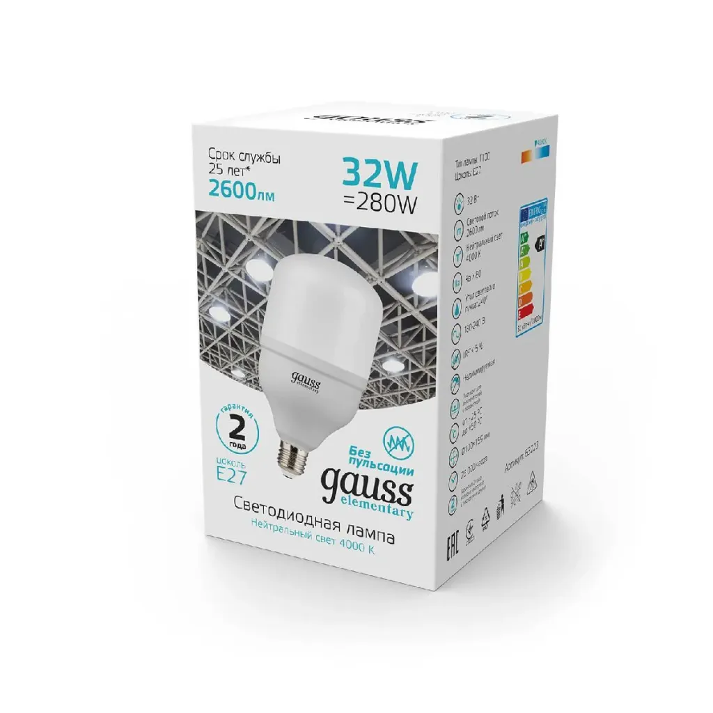 Лампа светодиодная Gauss E27 32W 4000K матовая 63223