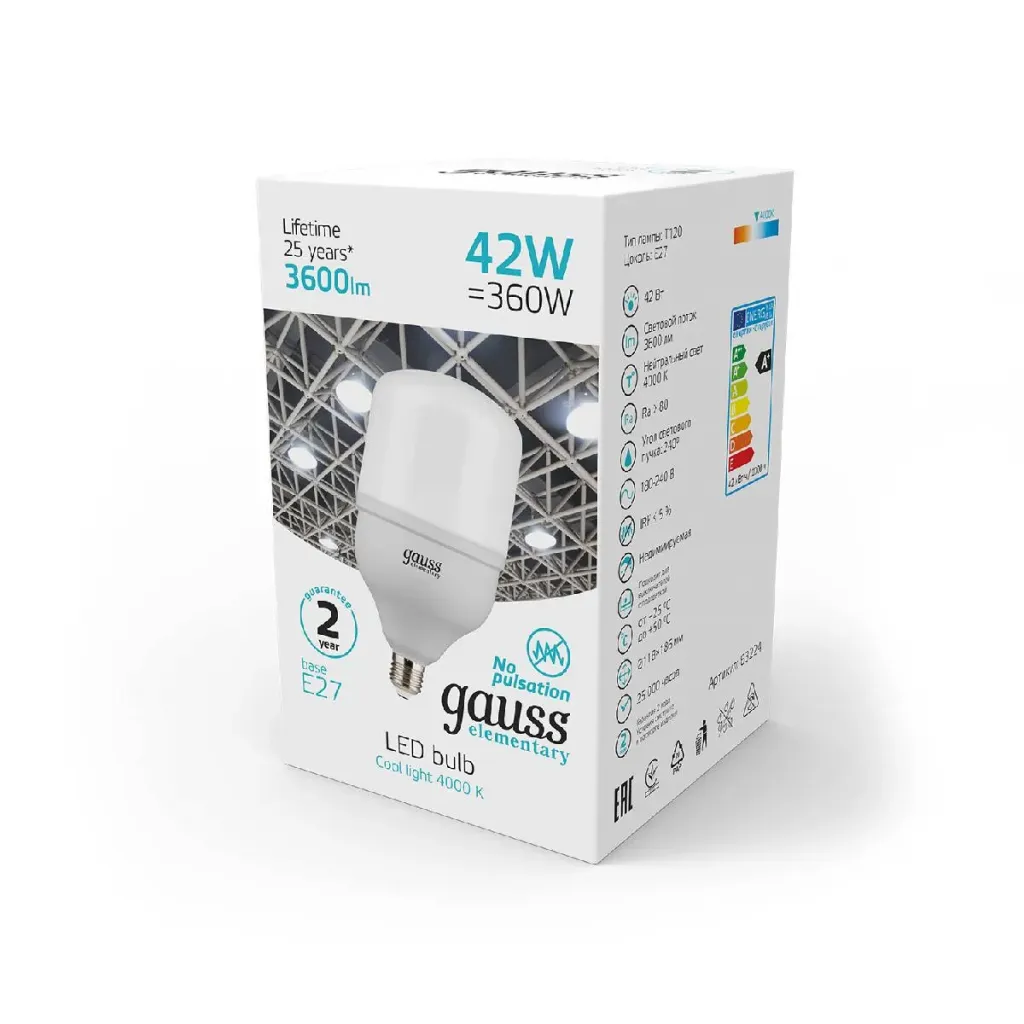 Лампа светодиодная Gauss E27 42W 4000K матовая 63224