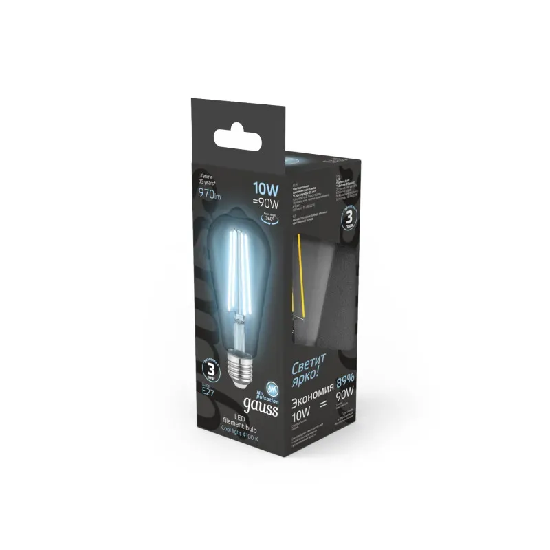 Лампа светодиодная Gauss Filament E27 10W 4100K 157802210