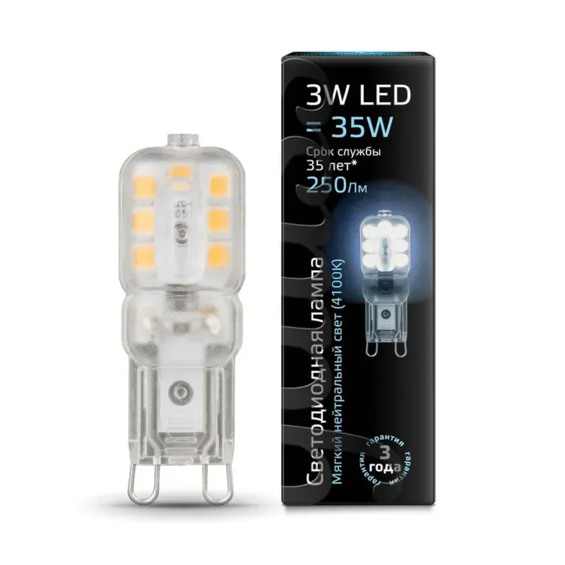 Лампа светодиодная Gauss G9 3W 4100K прозрачная 107409203