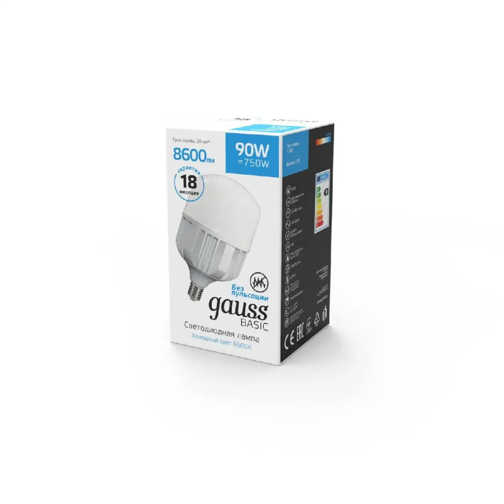 Лампа светодиодная сверхмощная Gauss E40 90W 6500К матовая 11734392