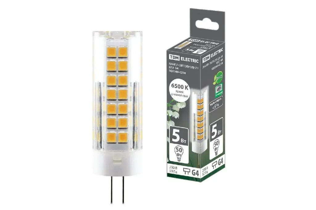 Лампа светодиодная TDM Electric G4 5W 6500K прозрачная SQ0340-0215