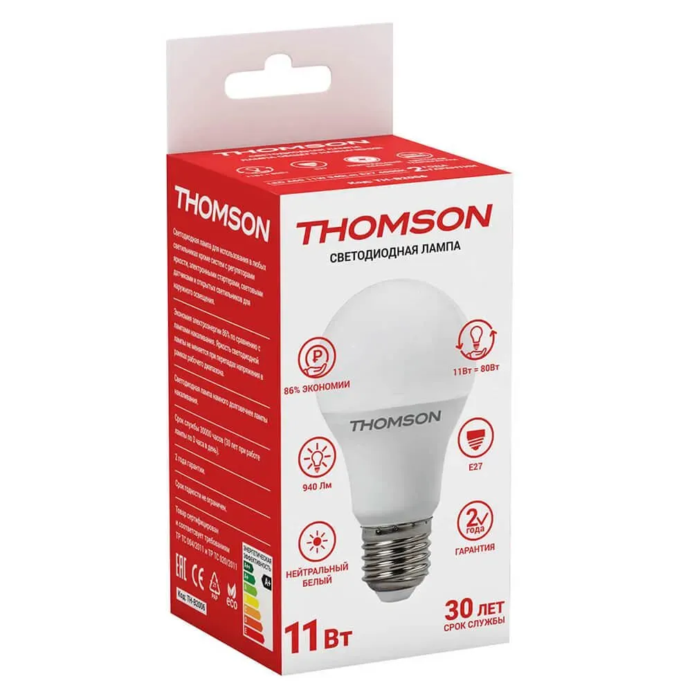 Лампа светодиодная Thomson E27 11W 4000K груша матовая TH-B2006