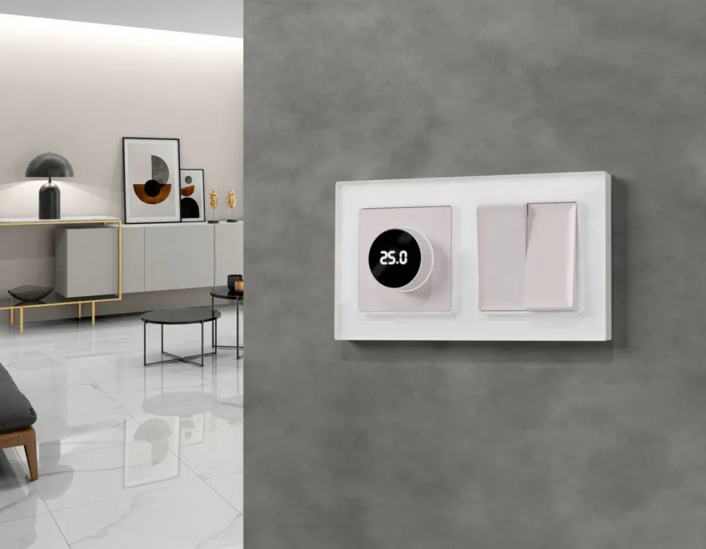 Лицевая панель Alfa (Жемчуг) для терморегулятора теплого пола с цифровым дисплеем Quant Ambrella Volt AP2058