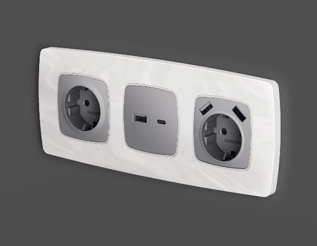 Лицевая панель для розетки с/з со шторками 2USB A+C Ambrella Volt Omega OP6600
