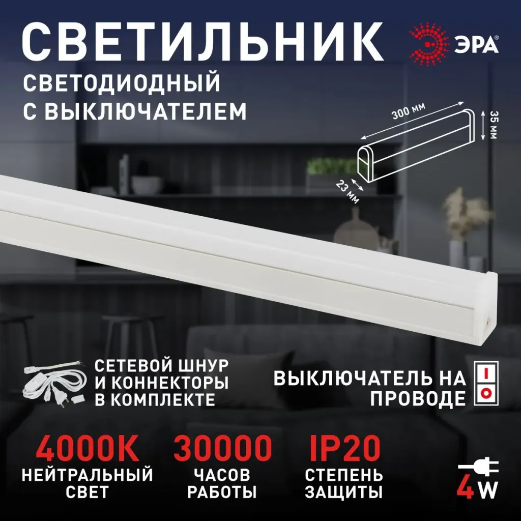 Линейный светильник (комплект) Эра LLED-04-0-40K-104 Б0066748