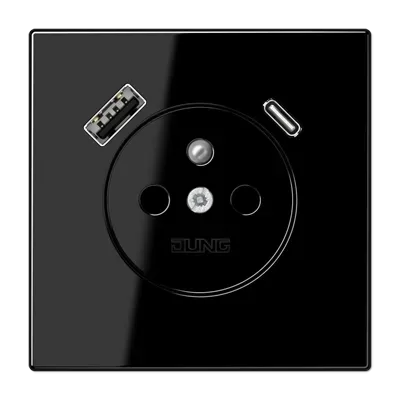 LS1520F-15CASW чёрный Розетка франко-бельгийской системы, 1 гнездо USB типа A и 1 гнездо USB типа C Jung LS серия