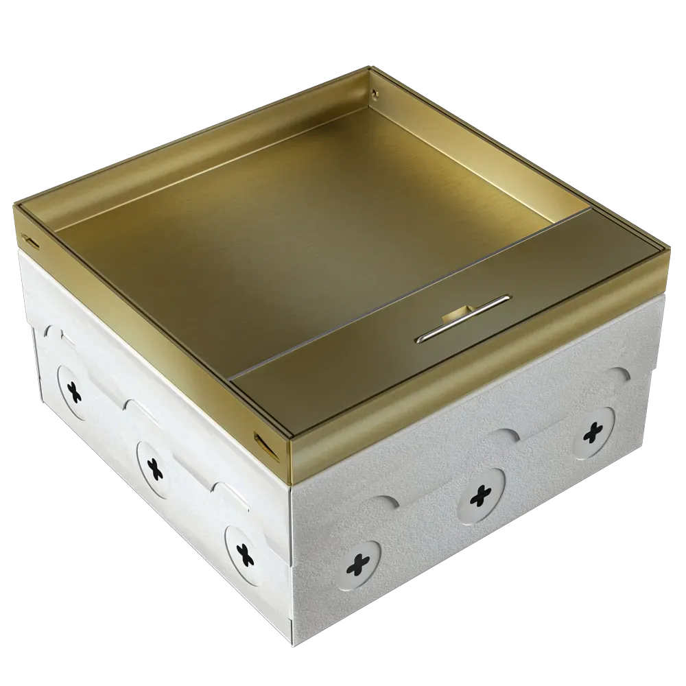 Лючок в пол 12 мод. (6 мод. 45х45 мм.) верт. установка, латунь, в уровень с напольным покрытием