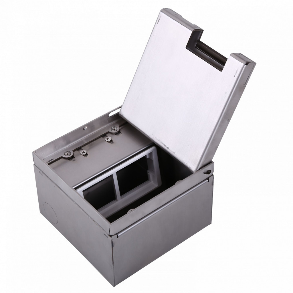 Лючок в пол 16 мод. (8 мод. 45х45 мм.) верт. установка, глубина 50мм, крышка ABS + гальванизированная стальная вставка