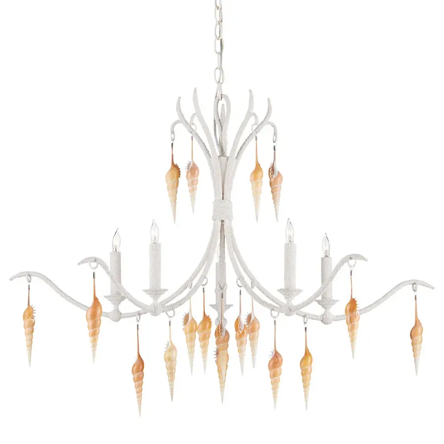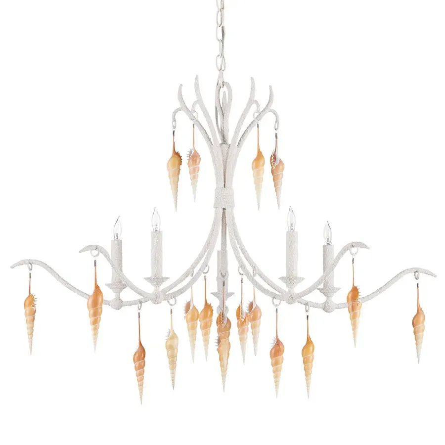 Люстра белая фактурная с подвесками из ракушек Study of Grace
