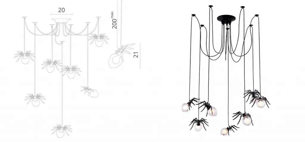Люстра черная Паук Spiders lamp 7