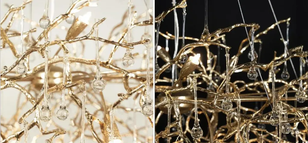 Люстра с хрустальными подвесками на металлических ветках Fairytree Light Gold Chandelier 18