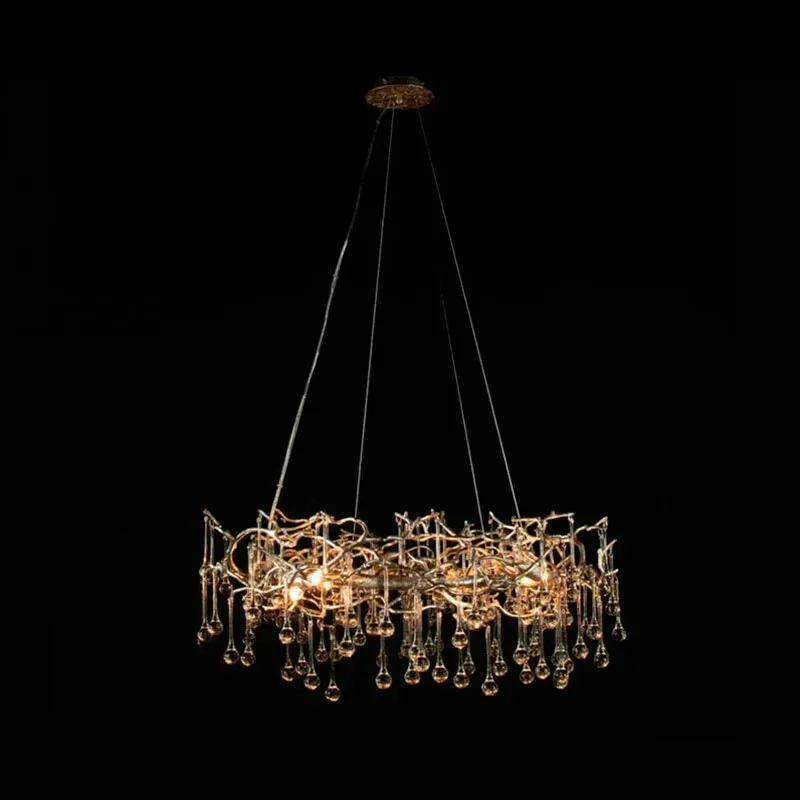 Подвесная люстра в виде ветвей деревьев золотого цвета с прозрачными подвесками-каплями 8 и 14 ламп Droplet Chandelier