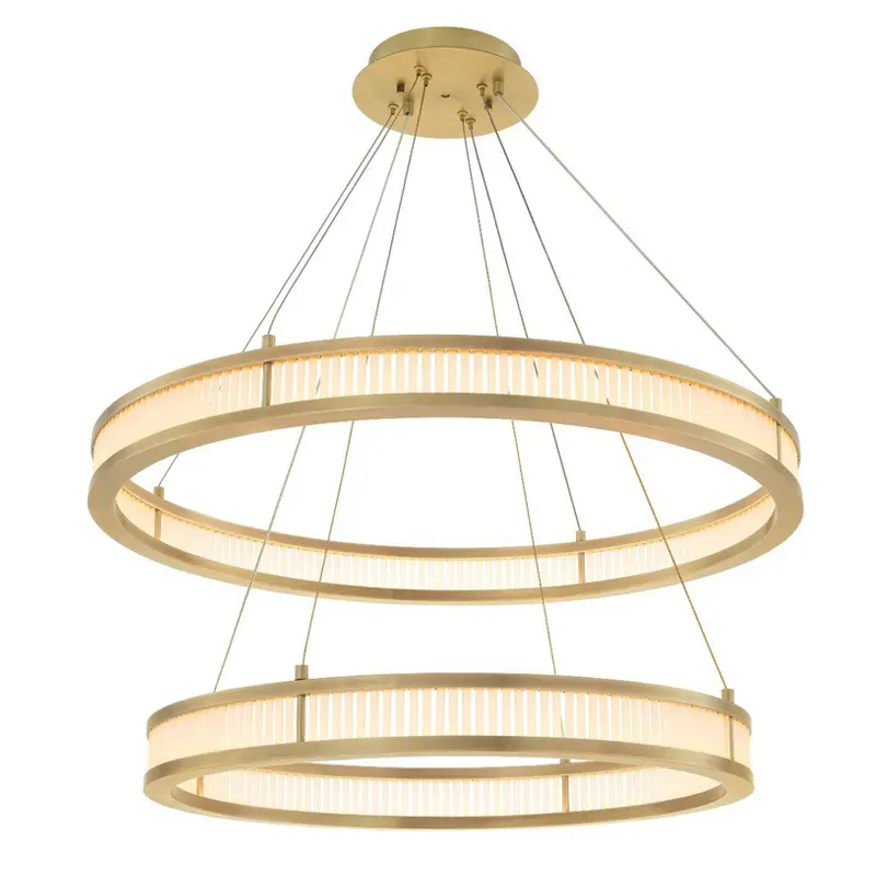 Люстра подвесная светодиодная с двумя золотистыми кольцами Диаметр 80 см Ring Horizontal