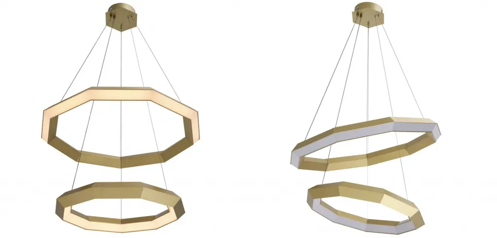 Кольцевая люстра золотого цвета из двух колец