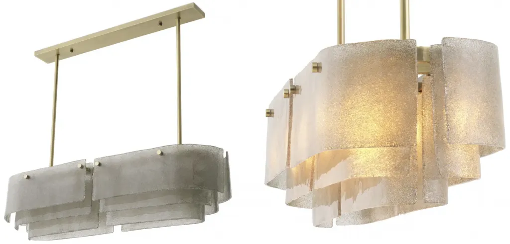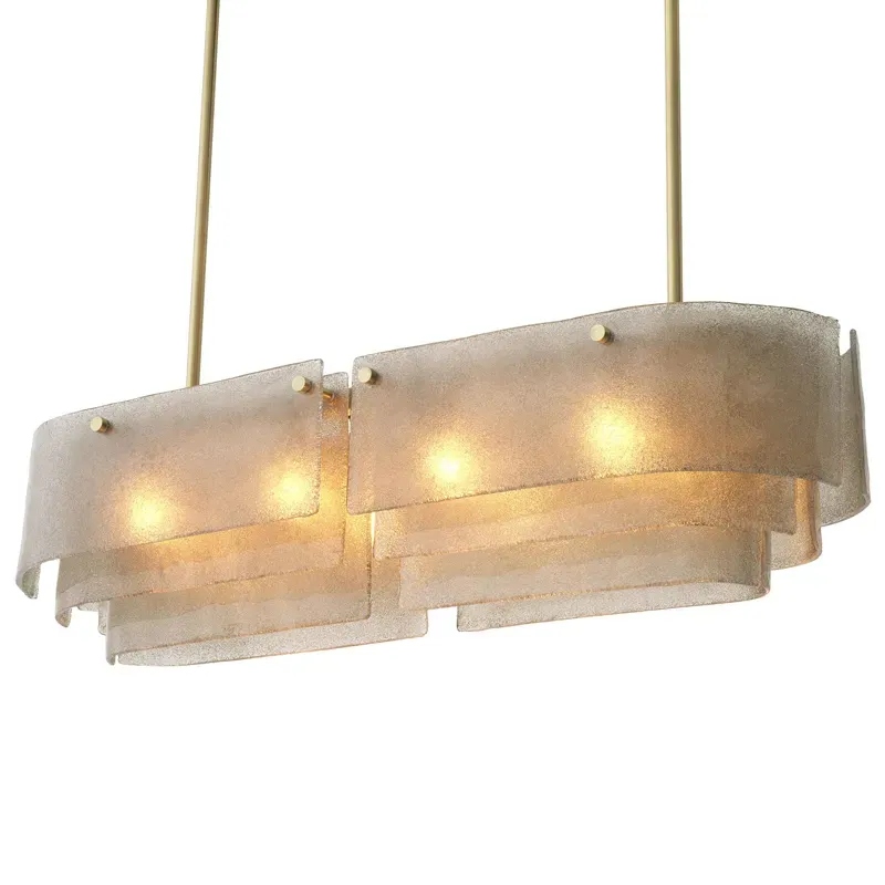Люстра прямоугольная из толстого литого стекла Cast Glass