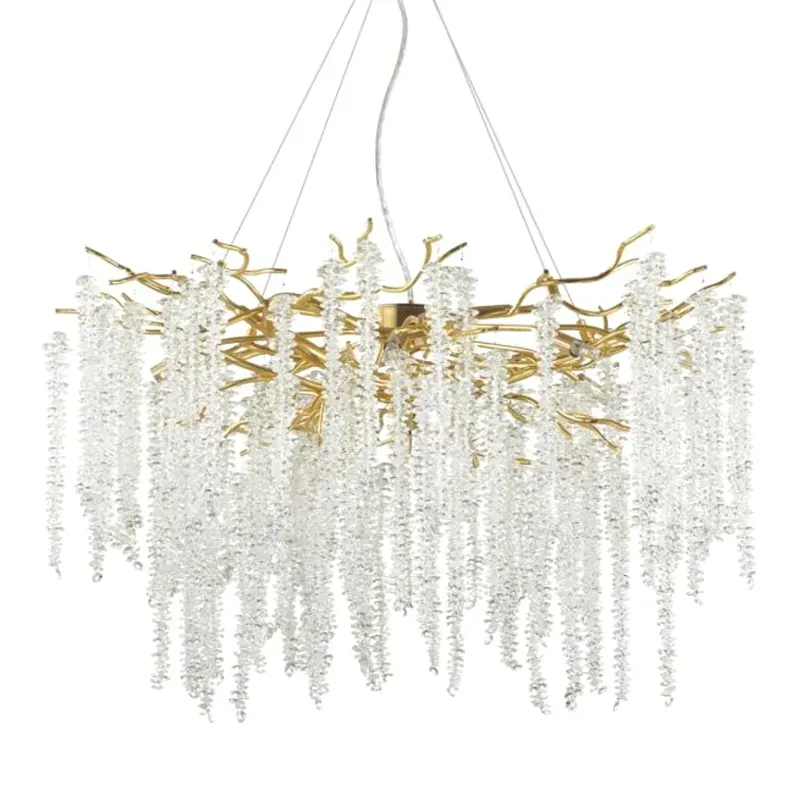 Люстра с хрустальными подвесками в виде капель Droplet Crystal Gold Chandelier 8