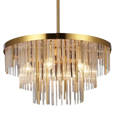 Люстра круглая с прозрачными рифлеными стеклянными стержнями Clear Fluted Rods