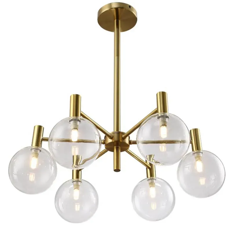 Люстра с выдувными плафонами коньячного цвета Carmella Globe Brass 6 Ламп