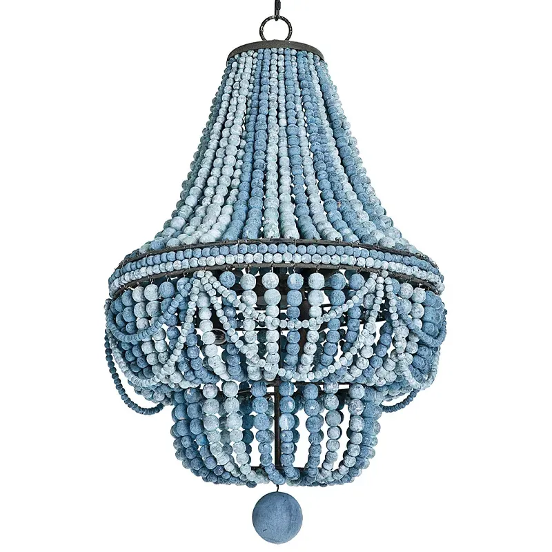 Люстра каплевидной формы украшенная круглыми бусинами синяя Blue Wooden Beads Chandelier