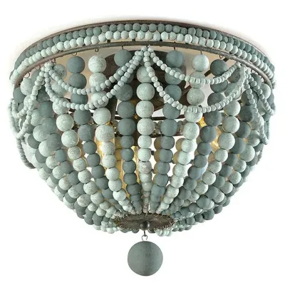 Круглый потолочный светильник с круглыми бусинами серо-зеленого цвета Wooden Beads Ceiling Light