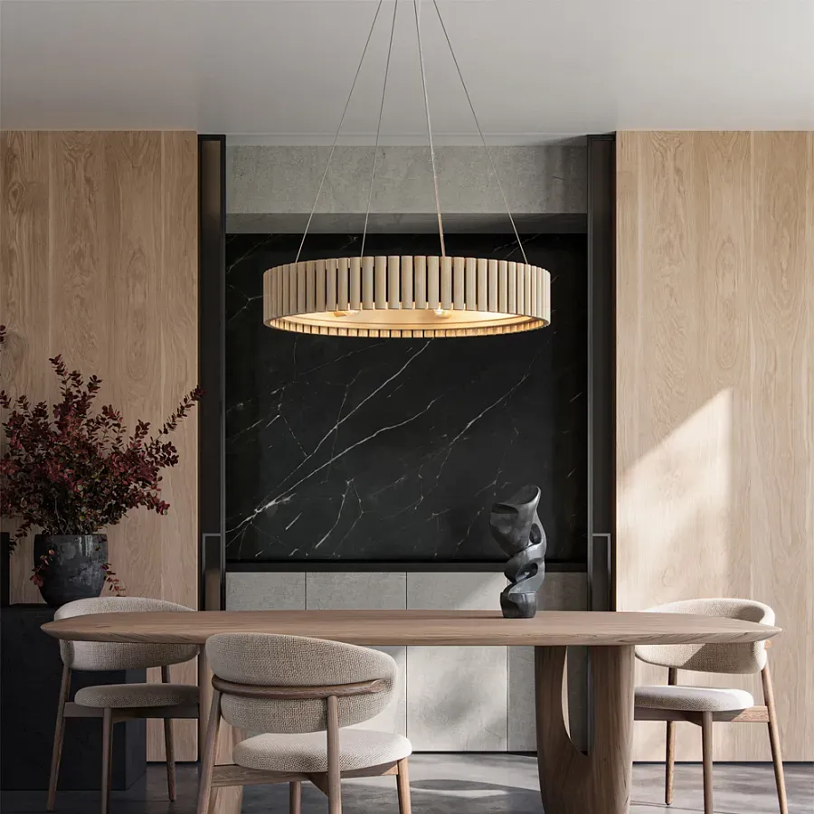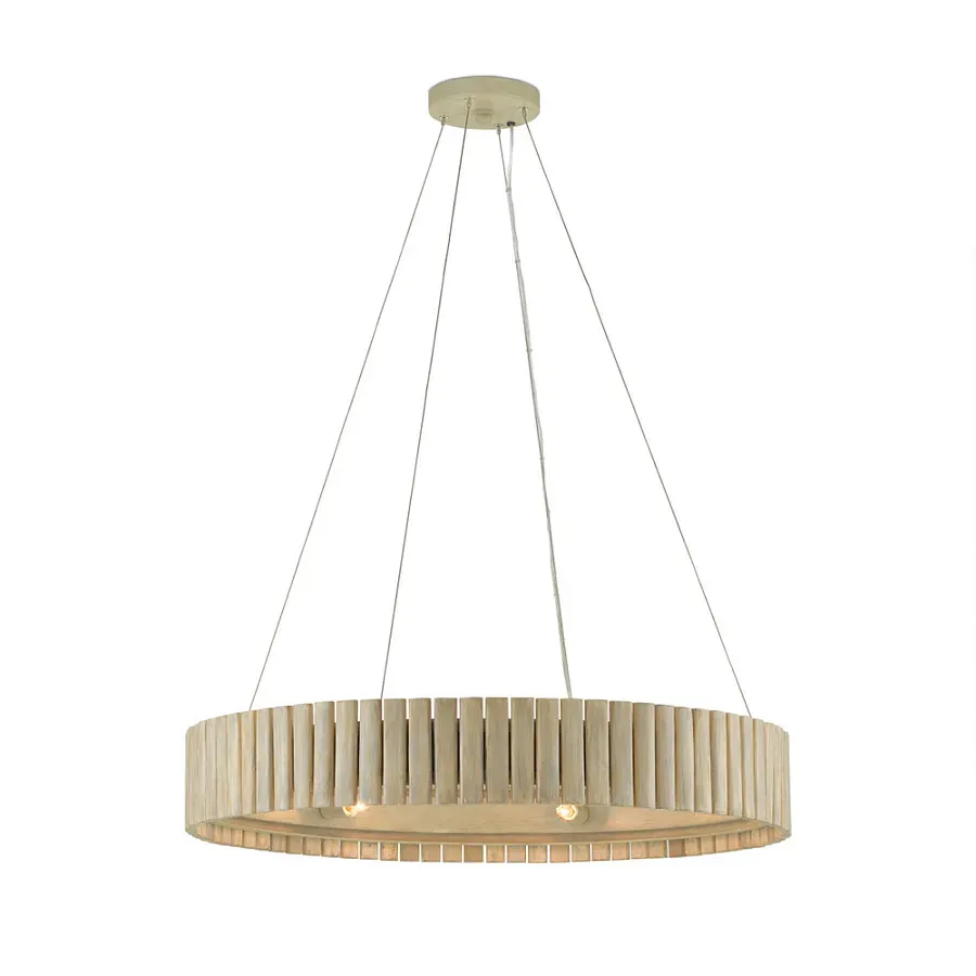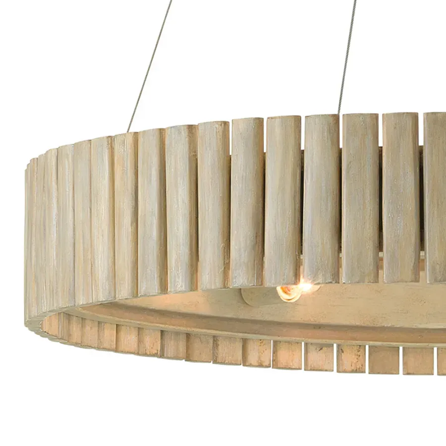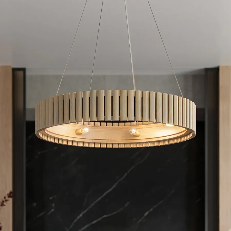 Люстра круглая из толстых деревянных реек Natural Style