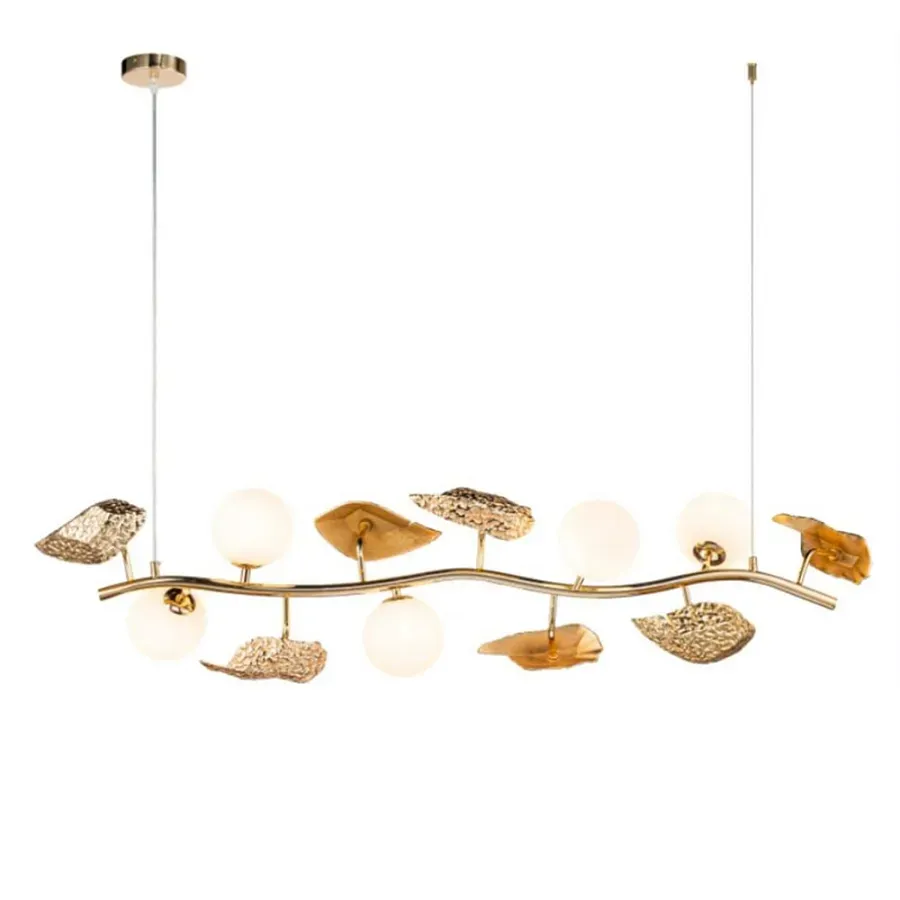 Люстра линейная на золотистом каркасе с белыми стеклянными плафонами Zest of Light
