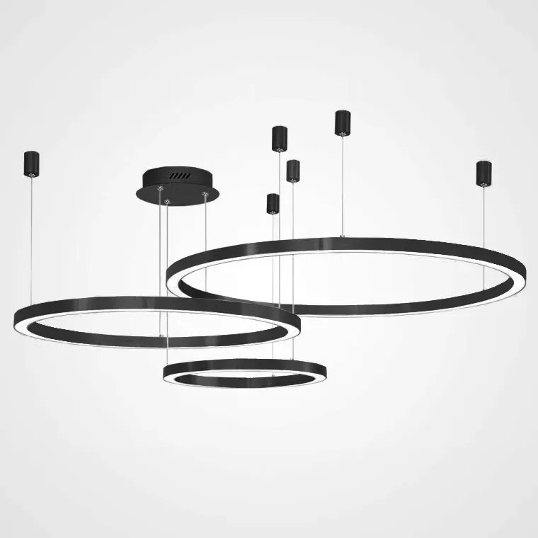 Люстра подвесная светодиодная с тремя черными кольцами и пультом управления Ring Horizontal