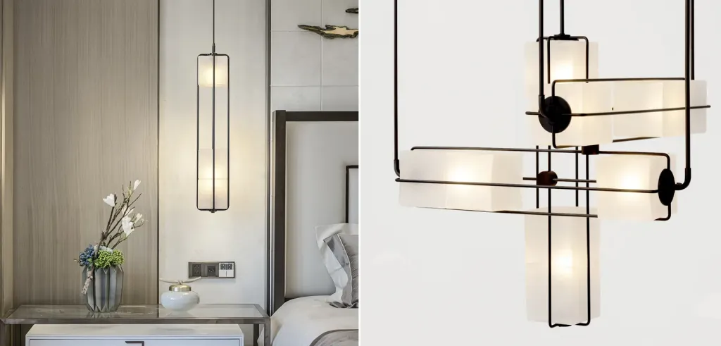 Подвесной геометрический светильник со стеклом Rectangle Geometry Trio Glass Chandelier