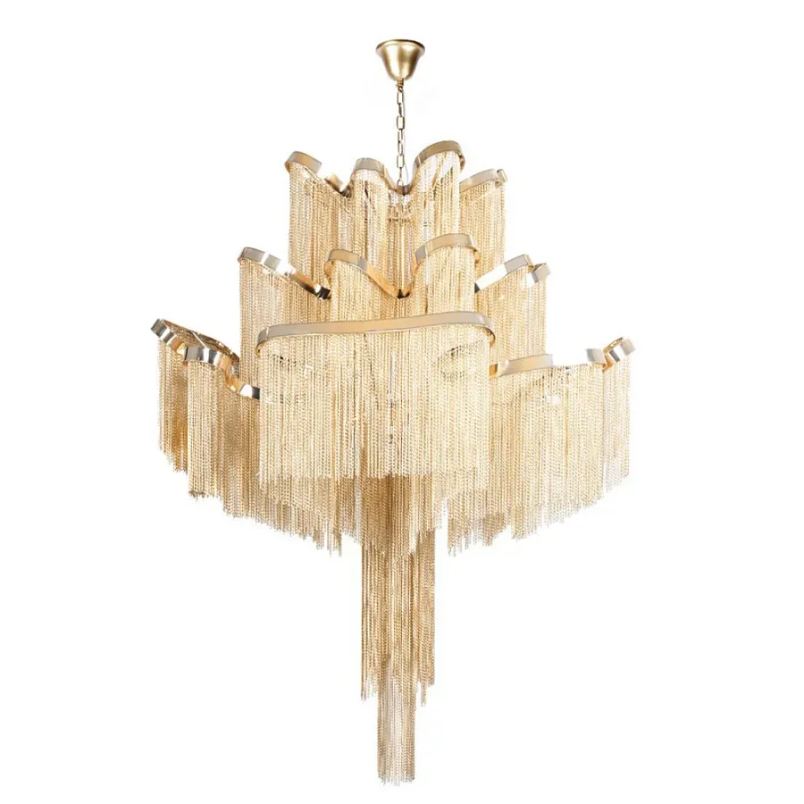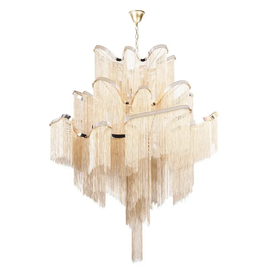 Люстра большая из золотистых металлических цепочек Atlantis Chain