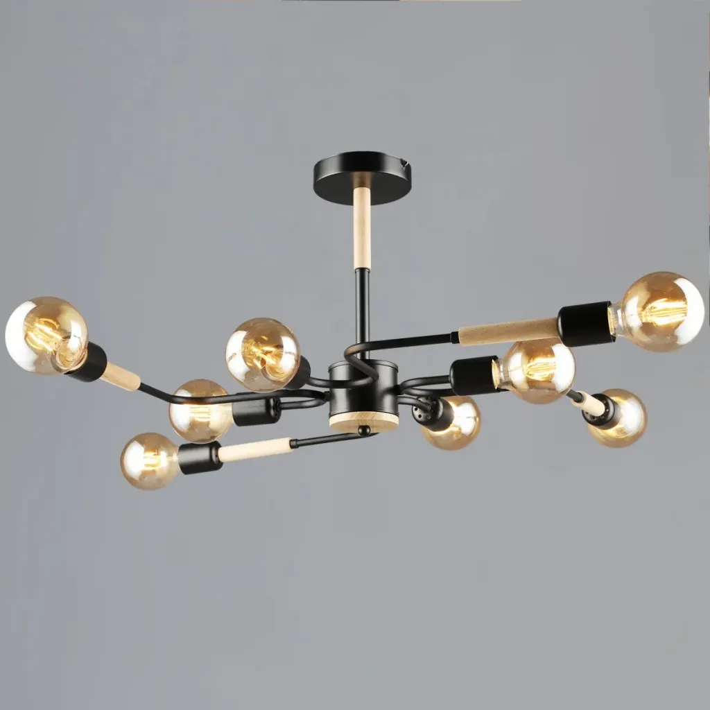 Люстра на штанге Reluce 10070-0.3-08 BK+WOOD